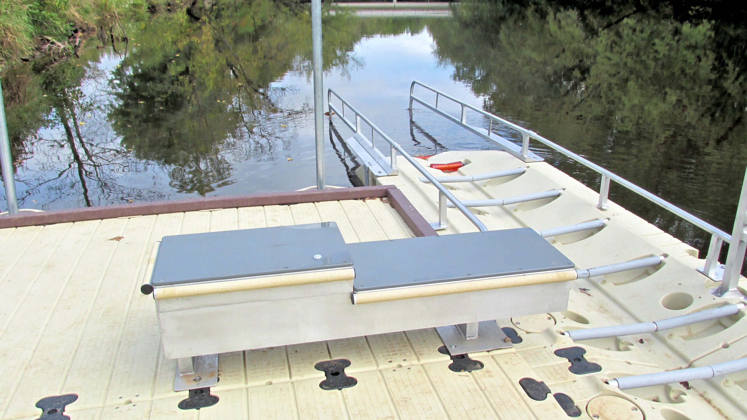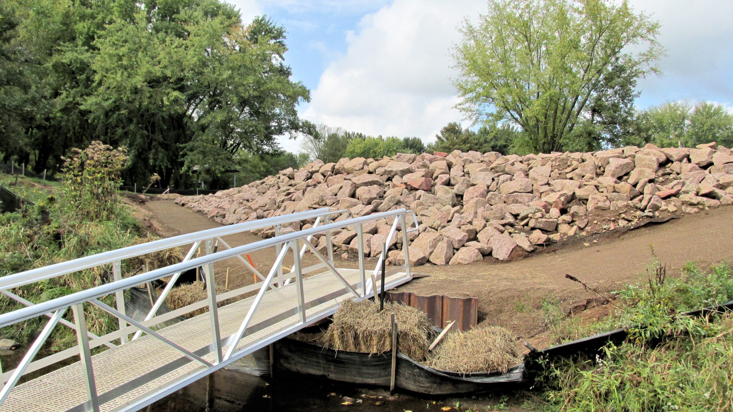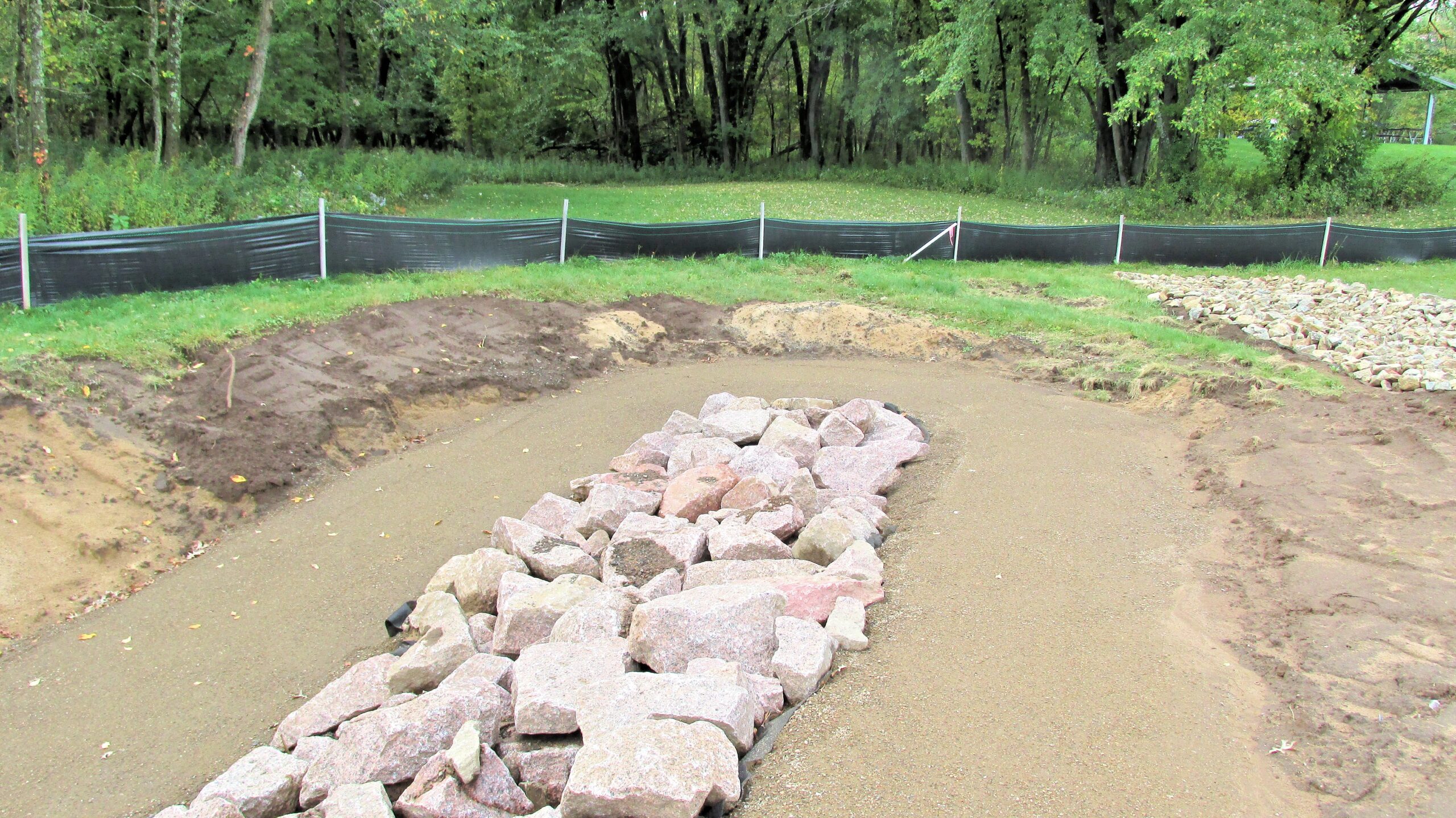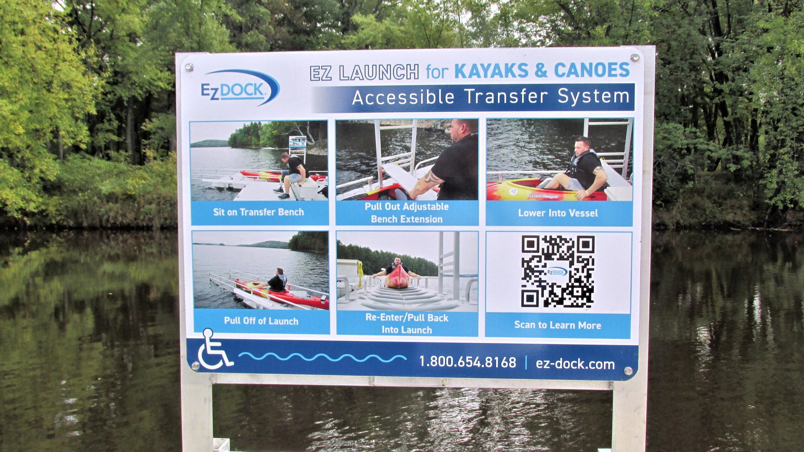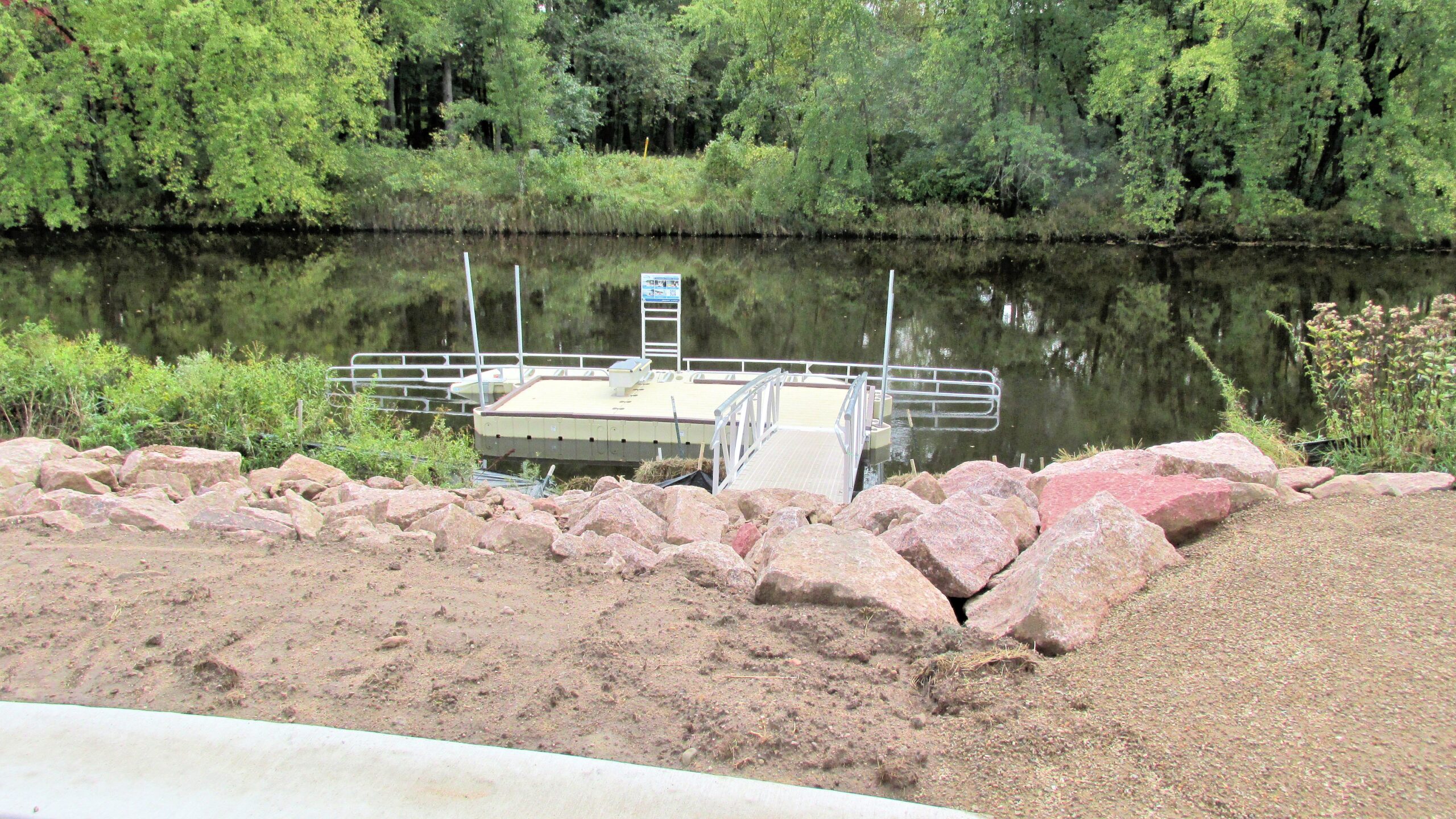 To the left is one of two ways to carry a kayak or canoe down to the ADA launch. This is shorter but steeper path than the alternative path on the right side.